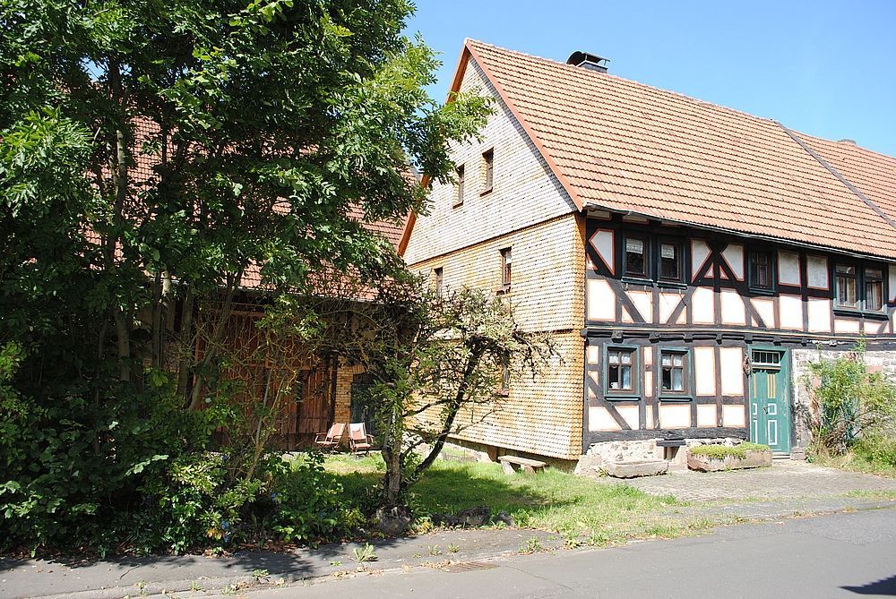 Zum Angebot gehören, das teilunterkellerte Fachwerkhaus mit Scheunenanbau, eine weitere, separate Scheune und ein eingewachsener Garten.