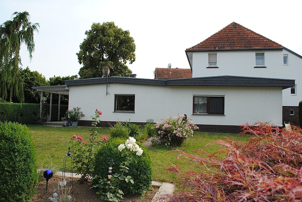 Das Haus ist Baujahr 1982, wurde in 1994 um einen Anbau erweitert und bietet außerdem ein herrliches Gartengrundstück, eine Garage, eine schöne Terrasse und rund 120 m² Wohnfläche.