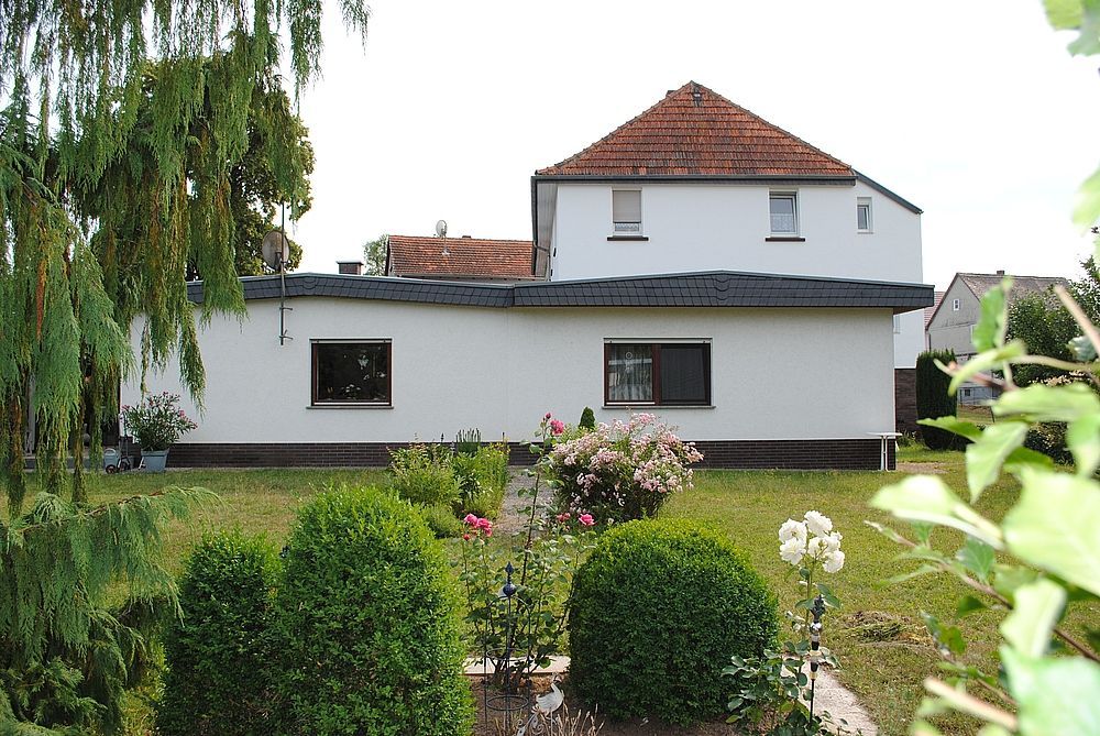 Das Haus bietet rund 130 m² Wohnfläche, Keller und eine geräumige Garage im Scheunenanbau.
